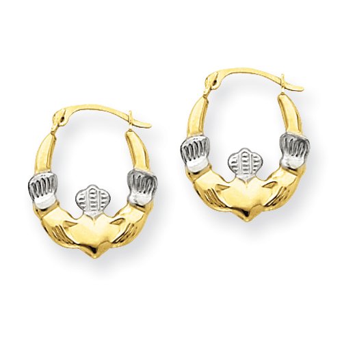 @@@ Product Details : 14k with Rhodium Claddagh Hoop Earrings